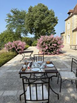 Une table d’hôtes avec produits frais du jardin et adaptée à vos envies vous est proposée. Les repas sont servis dans le salon avec grande cheminée ou sur la grande terrasse.