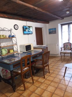 ☰ Vous serez accueillis dans cette maison familiale au cœur du village de Figarella, à 300m d'altitude, avec une superbe vue sur les montagnes et la côte. Les chambres ont gardé leur caractère rustique avec les plafonds en châtaigner. Elles ouvrent sur un salon où vous trouverez livres, jeux, etc...