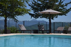 Une grande piscine sécurisée de 13 x 6 m est à la disposition des locataires. Elle surplombe la vallée et offre une vue à 180° sur les montagnes environnantes. La piscine est ouverte de mai à octobre, en fonction des conditions climatiques. Une aire de jeux pour enfants avec balançoire, toboggan et table de ping-pong est également proposée. Pour finir, un terrain de pétanque (boules mises à disposition) est situé juste en face de la piscine. ☰ Services et Divers :