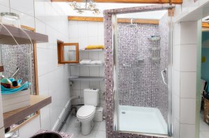 Gîte de 60 m², 3 pièce(s) Vue sur jardin Cuisine - Séjour/cuisine - 1 Salle de bains/WC. 2 Chambres - 1 lit de 2 personnes - 2 lits de 1 personne