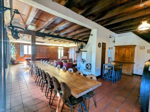 🥳 Imaginez vous en train de partager des repas conviviaux dans cette superbe salle à manger unique, dont les poutres massives, les habillages bois et le parquet qui proviennent des forêts locales, offrent un cadre propice à la création de souvenirs inoubliables.