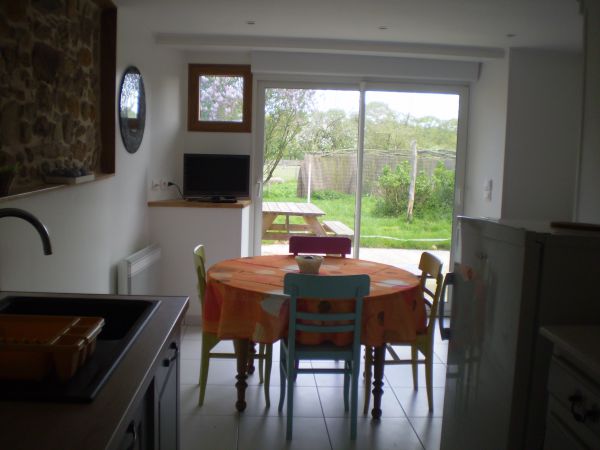 Tarifs Semaine Basse Saison : 350 (du 02 janvier au 06 février, du 05 mars au 9 avril, du 24 septembre au 15 octobre, et du 29 octobre au 17 décembre ) Moyenne Saison : 430 (du 06 février au 05 mars, du 09 avril au 02 juillet, du 27 août au 24 septembre, du 15 octobre au 29 octobre, du 17 décembre au 31 décembre ) Haute Saison : 450 (du 02 au 9 juillet, du 20 au 27 août ) Très Haute Saison : 480 (du 23 juillet au 13 août ) petit gîte cosy, classé, rénové dans une belle longère bretonne, au rez-de-chaussée, avec 1 salle à manger - coin cuisine, 1 chambre avec 1 lit 2 personnes et 1 autre chambre avec 1 lit 2 personnes et 1 lit 1 personne, salle d'eau, WC ,abri voiture, terrasse pelouse privée, TV, lave linge commun aux gîtes, possibilité de chauffage électrique. A l'étage : bien isolé et avec entrée indépendante, deux chambres d'hôtes. Gîte non fumeur. Location du samedi 16h au samedi 10h. Possibilité sur un autre gîte du vendredi au vendredi (nous consulter) |