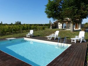 ☰ Location d'un gite entièrement rénové sur un terrain clos, au milieu des vignes en plein coeur du Périgord Pourpre, au départ de multiples découvertes du Périgord noir au Périgord vert, du Pays de Duras à celui de St Emilion. Gite de 70m² avec 2 chambres, pouvant recevoir 4 à 5 personnes. Terrasse couverte de 20m² et piscine privée.