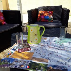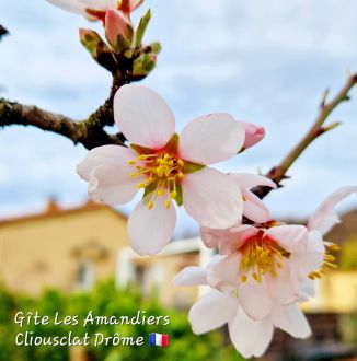 ☰ Le gîte Les Amandiers est un appartement de 64m² refait à neuf, mitoyen et indépendant au 1er étage de plain-pied dans une maison à 2 niveaux. Situé au pied du bois et entouré d’amandiers, il offre une belle vue sur Cliousclat et la vallée du Rhône. Le gîte est idéalement situé pour découvrir notre belle région.