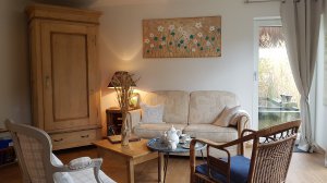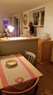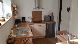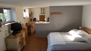 Gîte de 40 m², 1 pièce(s) Vue sur jardin Salon - Cuisine - Séjour/cuisine - 1 Salle de bains - 1 WC. 1 Salle de bains/WC. 1 Chambre - 1 lit de 2 personnes - 1 canapé