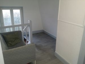 L'accès à l'étage se fait par un escalier en bois d'environ 15 marches et vous trouverez les 2 chambres (1 chambre avec 1 lit double et 1 lit simple et 1 chambre avec 3 lits simples).
