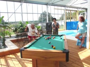 Gîtes paisibles en pleine campagne, proche de Nantes, dans un cadre très joli non loin de l'Erdre et du canal. Le gite est bâti avec des matériaux écologiques, il possède une piscine couverte dont l'eau est chauffée à 28 ° dans une verrière arborée. Gite de groupe d'une 15aine de personnes, idéale pour retrouvailles en famille ou avec les amis, il comprend : salon, cuisine aménagée, 6 chambres , un parc avec plan d'eau, salon de jardin, pingpong, Billard, baby foot, pétanque, vélos etc..