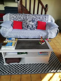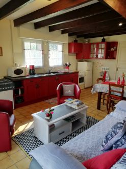 Gîte Maison de 60 m², 3 pièce(s) Vue sur jardin campagne mer Salon - Cuisine - Séjour/cuisine - 1 Salle de bains - 1 WC. 2 Chambres - 1 lit de 2 personnes - 2 lits de 1 personne
