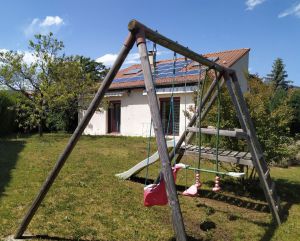 Logement pour 4-5 personnes :Maison de 93 m², 3 pièce(s)Vue sur montagne Salon - Cuisine - Séjour/cuisine - 1 Salle de bains - 1 WC. 2 Chambres - 1 lit de 2 personnes - 2 lits de 1 personne