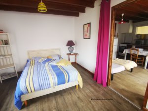 Maisonnette indépendante, de plein pied avec terrasse et jardin. Une chambre spacieuse, 2 fenêtres dont une plein sud, cuisine toute équipée. Séjour canapé lit et télévision écran plat. Salle d'eau avec douche, lavabo et toilette. Le linge de lit est en option (12€/parure)