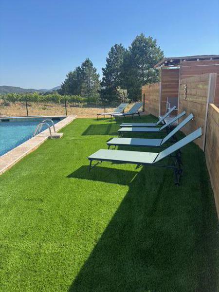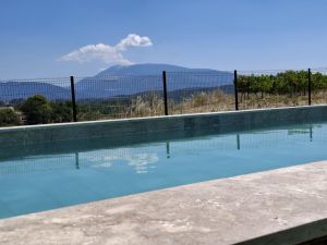 ☰ Gîte pour 4 personnes, à 5 km de Vaison la Romaine, en campagne avec vue sur le Mont Ventoux. Location de plain-pied lumineuse avec une cour privative, abri de voiture et piscine au milieu des vignes AOP cote du Rhône en exploitation BIO.