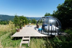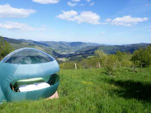 ☰ Dormez dans une bulle transparente dans les Monts d'Ardèche. Profitez d'un panorama spectaculaire sur le Vercors et les Alpes. Calme et sérénité garantie, expérience inoubliable assurée dans cette location insolite.