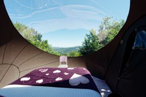 de 12 m², 1 pièce(s) Vue sur jardin campagne montagne vallée 1 Salle de bains - 1 WC. 1 Chambre - 1 lit de 2 personnes Tarif à la nuitée : 159 - 239€ Bulle transparente à ciel ouvertDormer à la belle étoile avec tout le confort d'une vrai chambre d'hotel (Salle de bain de charme privative avec wc séparé)Nuit insolite à 900m d'altitude en plein cœur de l'ardècheVue exceptionnelle sur le levé du Soleil et sur les montagnes |