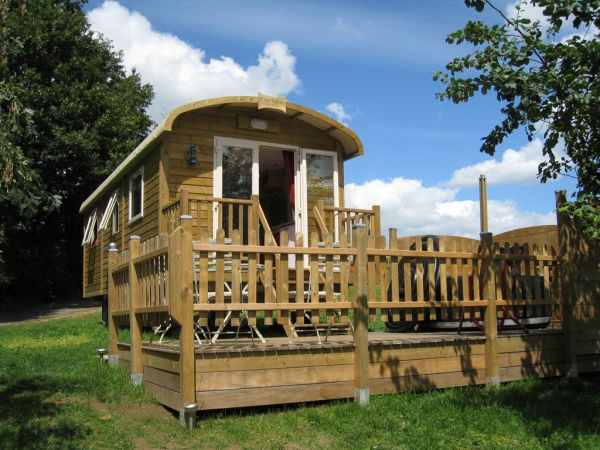 Logement pour 4 personnes :Roulotte de 21 m², 3 pièce(s)Vue sur campagne Séjour/cuisine - 1 Salle de bains - 1 WC. 2 Chambres - 1 lit de 2 personnes - 2 lits de 1 personne