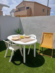 ☰ Location d'un appartement climatisé entièrement refait dans un quartier calme à 100 mètres de la plage. Le logement comprend une chambre, une salle de bain/wc, une cuisine équipée, un clic clac, un jardin (pelouse synthétique), une terrasse et une place de parking. A 10 minutes à pied des commerces et du port.