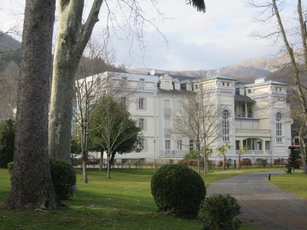 Idéal pour les curistes. Location de vacances à Argelès Gazost pour 2 personnes, à deux pas des thermes dans une résidence de caractère, avec vue sur le parc thermal et les montagnes. Tarif 1500€ pour 3 semaines.Cure thermale à Argeles-Gazost
