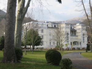 Idéal pour les curistes. Location de vacances à Argelès Gazost pour 2 personnes, à deux pas des thermes dans une résidence de caractère, avec vue sur le parc thermal et les montagnes. Tarif 1500€ pour 3 semaines.
