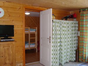 L'appartement, au rch du chalet, de plain-pied ,est très confortable. Le salon,orienté à l'est donne sur la terrasse. La cuisine est séparée du coin-repas.
