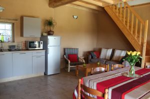 Gîte Maison de 65 m², 3 pièce(s) Vue sur jardin campagne Séjour/cuisine - Mezzanine - 1 Salle de bains - 1 WC. 2 Chambres - 2 lits de 2 personnes - 1 lit de 1 personne - 1 canapé