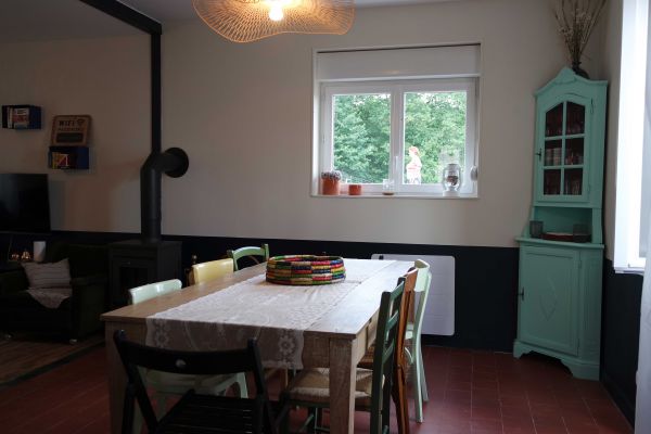 Gîte de groupe de 120 m², 5 pièce(s) Vue sur campagne Salon - Cuisine - 2 Salles de bains - 2 WC. 1 Salle de bains/WC. 4 Chambres - 5 lits de 2 personnes - 1 lit de 1 personne - 2 canapés
