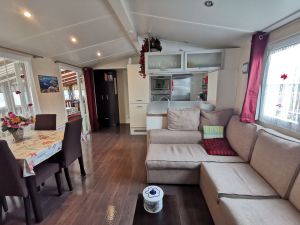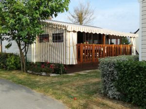 Mobilhome de 30 m², 4 pièce(s) Vue sur jardin Séjour/cuisine - 1 Salle de bains - 1 WC. 3 Chambres - 1 lit de 2 personnes - 4 lits de 1 personne