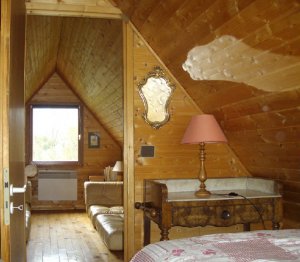 Gîte Chalet de 50 m², 3 pièce(s) Vue sur jardin campagne montagne Salon - Cuisine - Séjour/cuisine - Mezzanine - 1 Salle de bains - 1 WC. 1 Chambre - 2 lits de 1 personne - 1 canapé