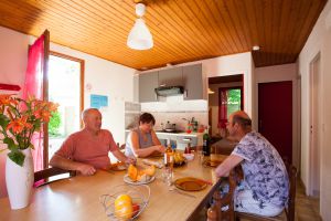 Logement pour 4 personnes :Gîte Chalet de 37 m², 3 pièce(s)Vue sur jardin campagne Salon - Cuisine - Séjour/cuisine - 1 Salle de bains - 1 WC. 2 Chambres - 1 lit de 2 personnes - 2 lits de 1 personne